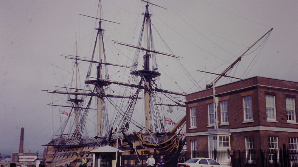 Drove to the stony beach and walked on more rocks-no climb this time. Place looks tattered and torn. Drove off along the beach which was slow but had more to see. After a while went to the A27 and speeded up. The town of Arundel is one to visit when it is sunny. It is one of the most photogenic towns I have seen. Got to Portsmouth. Headed for the Victory. Got lost. Went around the block and approached from a different direction. Got lost. Reversed my tracks and found the correct path. Got lost. Eventually found it and the car park just outside the gates. A food place was between the car park and the entrance. My stomach reminded me it had no breakfast. It was 11.16 and as it had opened at 11am I was able to get a couple of cups of coffee and a cheese macaroni dish which had heaps of cheese running off the macaroni and was best eaten with a spoon. It was very tasty. Went over the road and took a photo of one of the ships in the museum. Paid 5.75P to just see Victory. Could have paid more to see all ships but did not have time or inclination. It was 12.05 and the time she offered me for a tour was 14.05. The rest were full. I needed an earlier time and she found some 12.25 tickets. There was a tour at 12.20 which I thought was them calling our tour. So did a lot of others. Eventually got in and an exsailor showed us the ship and told us where Nelson lived and died, how the ship's complement lived and fought. It was an excellent tour. Then took a look at the Nelson Museum and was suitably impressed, and then a quick look at their other museum when I got into it as the entrance was not visible to me. Finally got back to the car and headed for Salisbury. The traffic in the town was crawling along and parking was not obvious so the tall spire which could be seen from miles away did not get a visit. Headed for the rocks at Stonehenge thinking that the traffic could be very bad as a radio report earlier had told of an accident. It sounded horrendous, with paint all over the road. Passed the van with its back bashed in and a little paint splashed on the road but all the holdup had gone. It was raining when I got to the rocks and I drove slowly passed thinking we could see that later. I wanted to see the accommodation at the YHA at Holmbury St. Mary and eventually found it. The chap in charge was not wanting a group for 6 or 7 days, was always full on weekends, and was probably full in April. I took the place off the itinerary. It was good for city kids being adjacent to 4000 acres of woodland but for people wanting to speak English it was 400 yards from the nearest house. It was not 5.30pm and I needed somewhere to stay for the night. That was not to be solved for a couple of hours as I kept getting lost trying to find somewhere with a single room. Stopped behind a traffic policeman in a car who had just pulled over a motorist.
